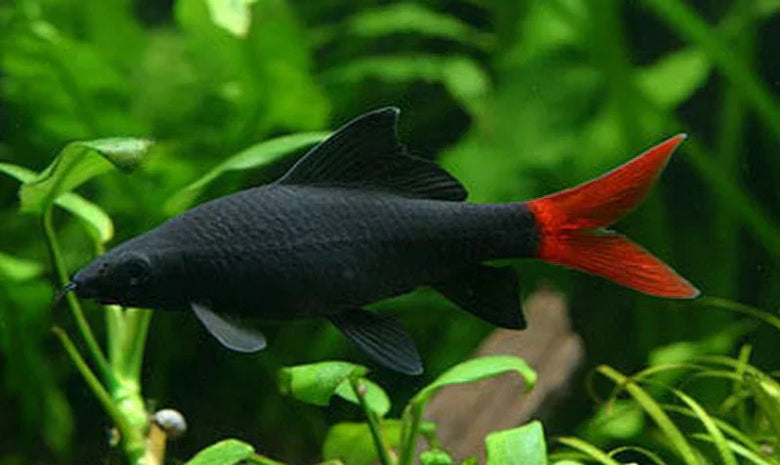 Red-Tailed Black Shark – The classic variety, featuring a jet-black body with a bright red tail.