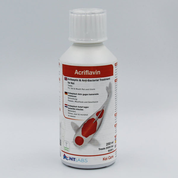 Koi Care Acriflavin from specialists NT Labs is designed to reduce the numbers of harmful bacteria in your pond.